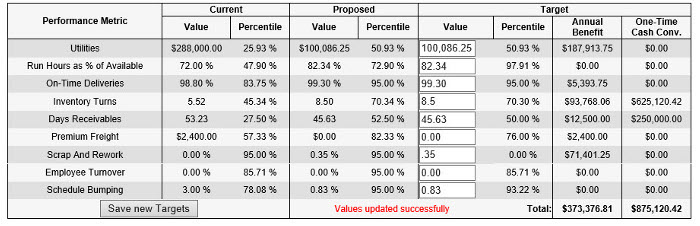The Transformation Planner is a leading source of benchmarking data for manufacturing. Since 1992, MMTC has collected vital operating data on small and mid-size manufacturing companies across North America, measuring more than 50 metrics. The Transformation Planner allows companies to model how much capacity can be made available by implementing production improvements. It estimates the resulting opportunities for growth that can occur with no additional investment in machinery and with no increase in production hours.
